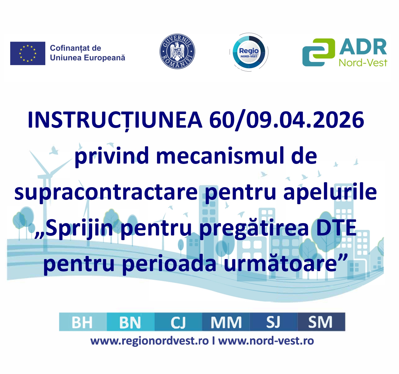 În acord cu răspunsul trimis de către AM PR NV 2021-2027 cu numărul 045729/09.04.2026 către Agenția de Dezvoltare Regională Nord-Vest cu privire la suplimentarea alocării apelurilor de proiecte dedicate apelurilor „DTE – Sprijin pentru pregătirea documentațiilor tehnico-economice pentru proiecte care vizează următoarea perioadă de programare”,